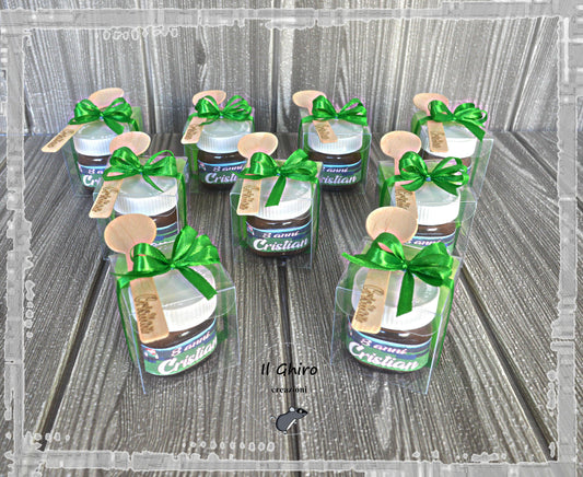 Offriamo la possibilità di avere il singolo barattolino di Nutella personalizzato o anche completo di confezione e Cucchiaino in legno Personalizzato.