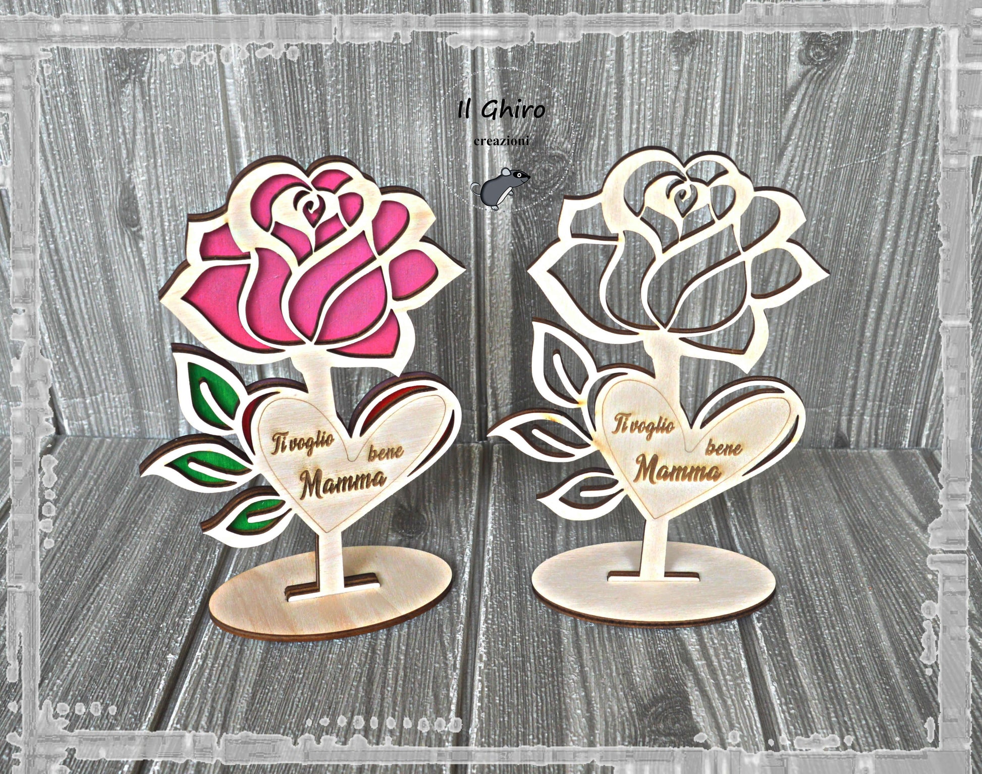 Rosa a Rilievo in Legno Neutra o Dipinta con Dedica.